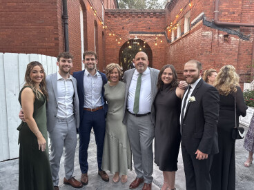 I lived with two of Nichole’s cousins. I worked with two of her aunts and another cousin. All of them tried to set us up. The number of times I heard, ”You should meet our cousin/niece Nichole. You would be perfect together.” We ended up sitting next to each other at a restaurant while hanging out with mutual friends. We talked the whole meal, and continued talking after everyone left. I came home that night and told my roommates, ”I met your cousin, Nichole. You weren’t wrong.” We dated for a year and were engaged for six months. We just knew.